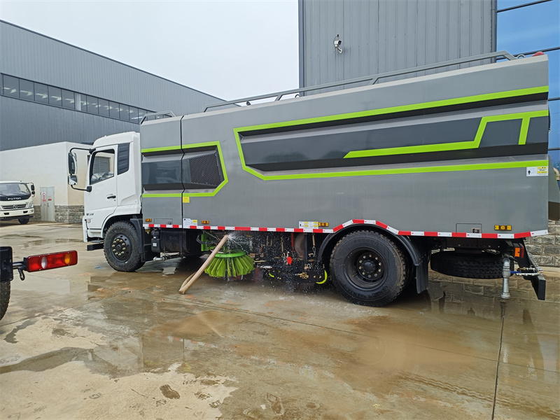 该扫路车采用东风天锦型二类底盘改装,加装副发动机、风机、清水箱、垃圾箱、左右立扫、后置吸盘,扫盘降尘系统,液压系统、装置电控系统和副车架等改装而成(可加装前冲后洒,可以根据客户要求做成方形、圆形箱体。)