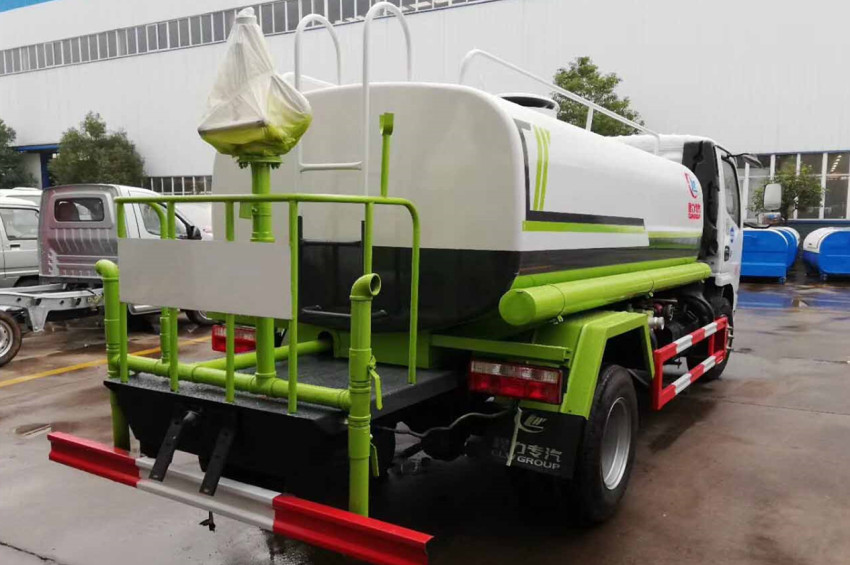 东风小多利卡5吨洒水车上装配置:东风多利卡5方洒水车罐体采用4mm厚武钢产专用容积板制作,公告标准容积4.06立方米(可按用户订做4-5立方),杭州威龙大功率专用洒水泵。前冲(喷),后洒,带侧喷,后置工作平台,平台上安装绿化洒水高压炮(炮喷射形状可调成直冲状、大雨、中雨、毛毛雨、炮可360度旋转,射程>30米)。带自流阀,消防接口。带自吸泵,可将池塘的水直接吸入罐体内也可直接从城市街道消防栓上连接注水,吸入罐体内。