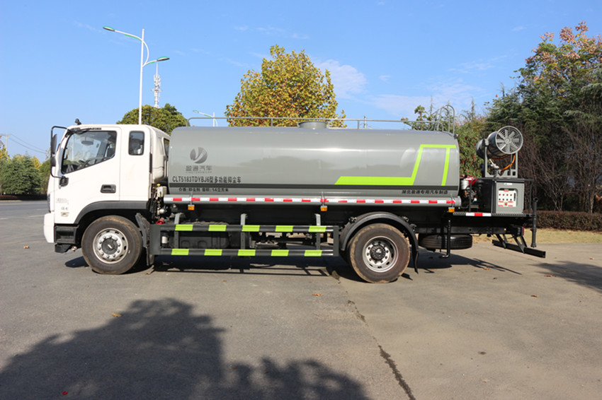 雾炮洒水车罐体为椭圆形或方形,采用武钢优质碳钢板制成,罐体仓内1.5米一道隔板,具有防波防荡作用,还可按用户要求进行专业的防腐防锈处理,罐体外可用发泡或岩棉加装保温层起保温功能。可选装药盘,药泵、高压喷药设备、非车带泵动力等.、罐内防腐防锈、多方位进出水接头、气动阀、警灯等先进设施,以满足不同用户需求。