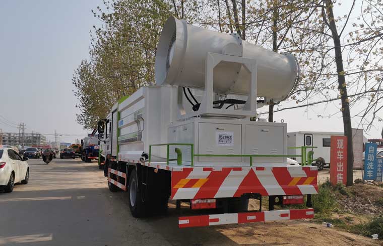 性能简介:吸程≧7米,洒水宽度≧14-16米,射程≧25-40米,引水时间<5min,流量60m3/h。前冲(喷)、后洒、带侧喷(花洒)、带后工作平台、平台上安装绿化洒水高炮(炮喷射形状可调节:直冲、大雨、中雨、毛毛雨、雾状、可连续调节,360°旋转),配消防接口,自流阀,滤网,带自吸自排功能。安装30-80米雾炮,雾炮可以遥控操作,可以手动操作,按雾炮大小配多大功率发电机