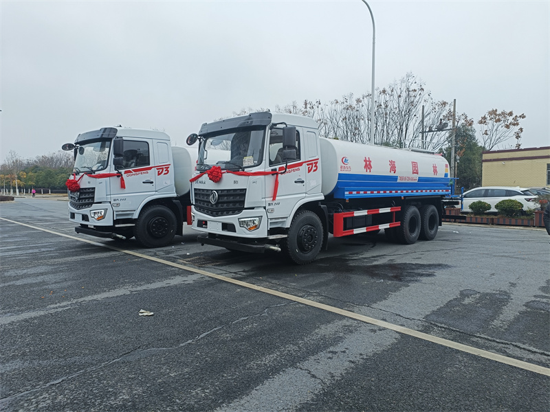 配备大功率专用洒水泵,泵可自吸自排,安装过滤网,带消防接口,可通过消防栓进水,带自流阀,随车选装20米绿化卷盘,可喷洒农药,罐体金属漆。罐体有椭圆和方圆罐两种,可根据用户的要求定做