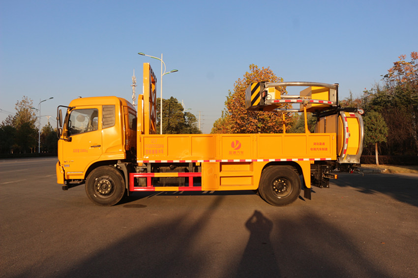 该车专用装置为:车载式缓撞装置,主要用于移动施工、临时性封闭车道或交通事故处理及抢险现场, 降低城市道路施工、高速公路养护等作业中的安全问题;后伸800mm;ABS型号/生产厂家: 3631010-C2000/东科克诺尔商用车制动系统(十堰)有限公司,ABS 8/东科克诺尔商用车制动系统(十堰)有限公司, 4460046450/威伯科汽车控制系统(中国)有限公司;侧防护材料为:Q235碳钢,连接方式为:焊接连接, 后部防护为专用装置代替,后部防护离地高度(mm):380。随底盘选装驾驶室. |