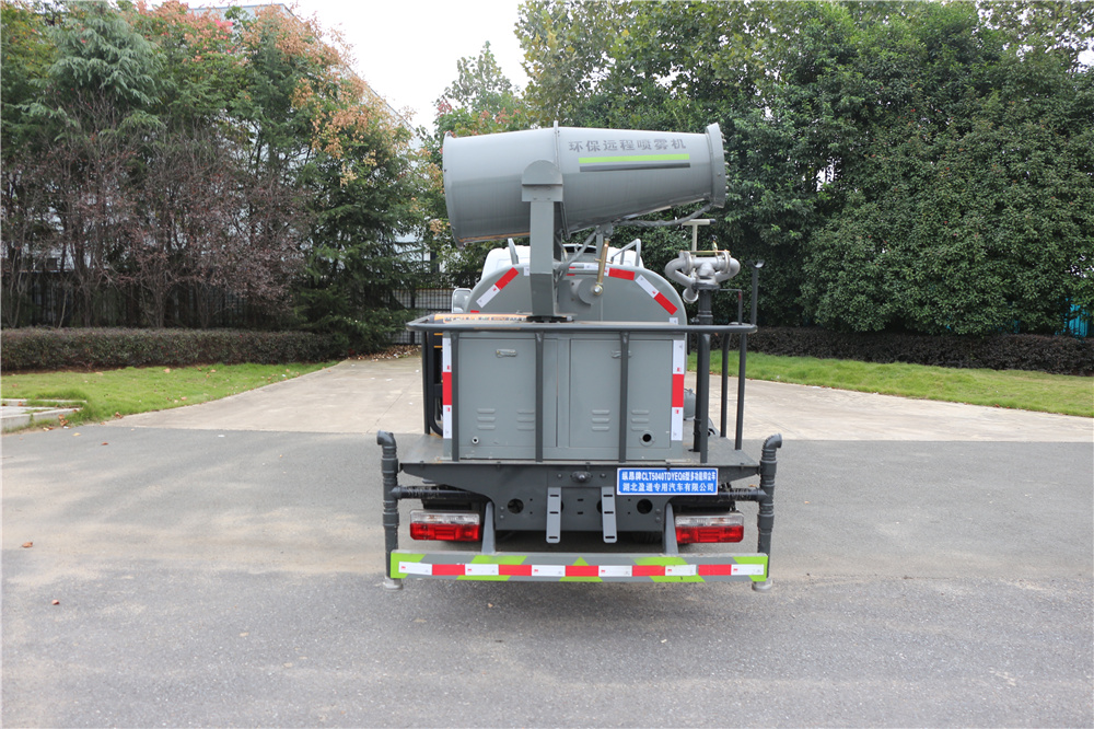 • 专用功能配置:罐体实际容积约为2.6立方米,采用武钢优质碳钢板卷压成型。配备专用洒水泵,前喷后洒、侧喷、后工作平台及洒水高压炮。洒水泵自吸高度为6米左右,整车洒水宽度14米左右,后工作平台水炮可调成:直冲状、大雨、中雨、小雨、毛毛雨,有效射程≥28米,整车带接头、水位计,自流阀及自吸功能。后工作平台主管路带1寸浇花接口,附送2根3米水管,1个爬梯,两侧及后保险杠。