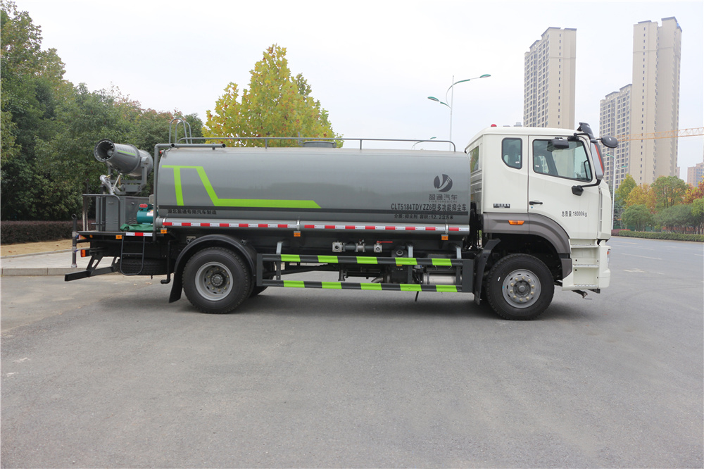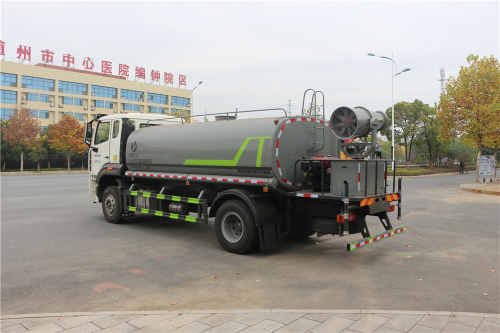 整车说明:选装喷雾装置样式。该车用途为抑尘降霾.主要装置为罐体及喷雾装置;随底盘选装驾驶室;选装附件布置;罐体有效容积:12.2立方米,罐体外形尺寸(长×长轴×短轴)(mm):4800×2400×1530,ABS系统型号为446 004 6300,生产企业为威伯科汽车控制系统(中国)有限公司。选装EBS,EBS系统控制器生产企业:威伯科汽车控制系统(中国)有限公司,型号:EBS3。侧、后防护材料均为:Q235碳钢,连接方式均为:螺栓连接,后部防护截面尺寸(mm):120×50,后部防护离地高度(mm):480.采用4700mm轴距。