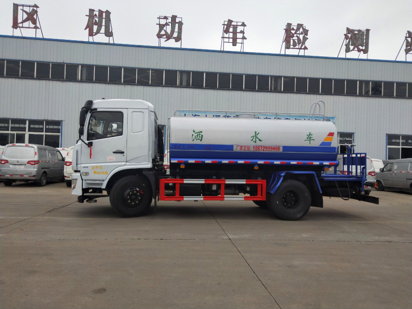 洒水车主要配置: 前冲(喷)、后洒、带侧喷(花洒)、带后工作平台、平台上安装绿化洒水高炮(炮喷射形状可调节:直冲、大雨、中雨、毛毛雨、雾状、可连续调节,360度旋转),配消防接口,自流阀,滤网,带自吸自排功能。