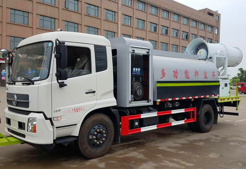 抑尘车吸程≧7米,洒水宽度≧14-16米,射程≧25-40米,引水时间<5min,流量60m3/h。前冲(喷)、后洒、带侧喷(花洒)、带后工作平台、平台上安装绿化洒水高炮(炮喷射形状可调节:直冲、大雨、中雨、毛毛雨、雾状、可连续调节,360°旋转),配消防接口,自流阀,滤网,带自吸自排功能。配备大功率专用洒水泵,泵可自吸自排,安装过滤网,带消防接口,可通过消防栓进水,带自流阀,此车尾部加装大功率农药喷洒炮,喷洒状态雾状,有效射程15-45米,外部平台带独立的机组。