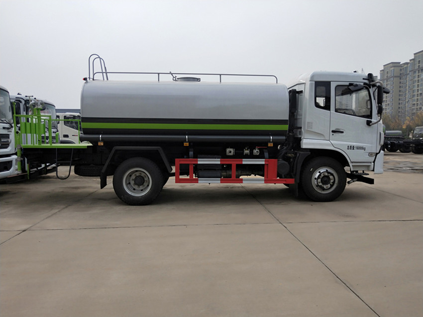 配备大功率专用洒水泵,泵可自吸自排,安装过滤网,带消防接口,可通过消防栓进水,带自流阀,随车选装20米绿化卷盘,可喷洒农药,罐体金属漆。罐体有椭圆和方圆罐两种,可根据用户的要求定做