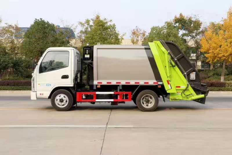 新款平面弧形厢体,厢体材料为武钢优质碳钢,外箱尺寸:5995×2000×2450mm,有效压缩容积4立方,PLC一键操作控制,手电一体操作模式,两侧双电控,带驾驶室内操作,底板支撑加强,双向压缩,开放式易清洁污水箱,解决了垃圾运输过程中的二次污染的问题。压缩式垃圾车具有自动反复压缩以及蠕动压缩功能,压缩比高、密封性好、装载量大﹑操作方便、环保性好﹑整车利用功率高等优点。凯马压缩式垃圾车小巧灵活,可在市内地下室任意穿行,C证可开。