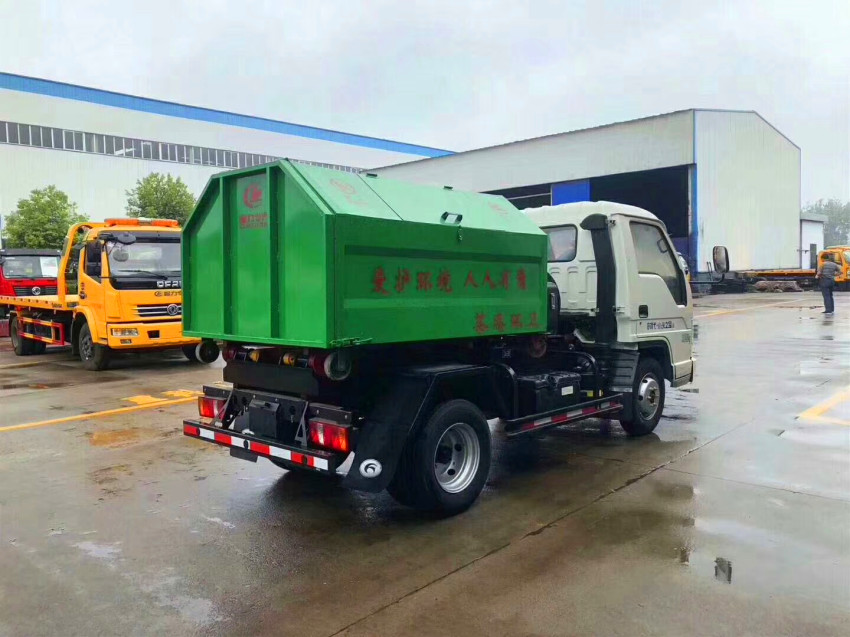 采用国标碳钢3mm板材制作,采用武钢产Q235-A型。 带电磁取力,齿轮泵,液压油缸,厢体两侧开门,带液压撑杆,后门带密封条,带锁紧装置,四角带滚动轮,可自卸。采用好质量油漆,车厢外部做防锈处理,车身油漆为白色,垃圾箱为上白下蓝。福田勾臂式垃圾车底盘配置: