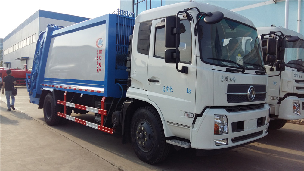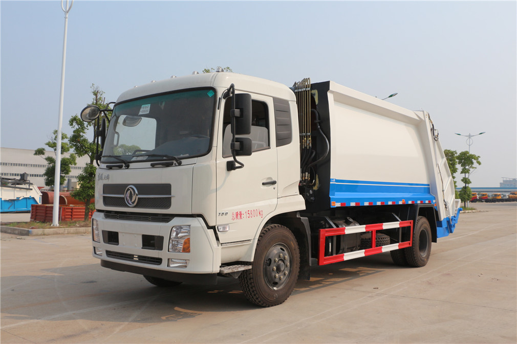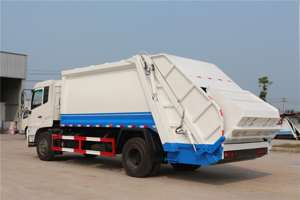 新款平面弧形厢体,厢体材料为武钢优质碳钢,外箱尺寸:8840×2550×3200mm,有效压缩容积10-12立方,PLC一键操作控制,手电一体操作模式,两侧双电控,带驾驶室内操作,底板支撑加强,双向压缩,开放式易清洁污水箱。压缩式垃圾车采用机电液一体化技术,借助机、电、液联合自动控制系统、电脑控制、手动操作系统,通过填装器和推铲等专用装置,实现垃圾倒入、压碎或压扁、强力装填,把垃圾挤入车厢并压实和推卸,污水全部进入污水收集箱,解决了垃圾运输过程中的二次污染的问题。压缩式垃圾车具有自动反复压缩以及蠕动压缩功能,压缩比高、密封性好、装载量大﹑操作方便、环保性好﹑整车利用功率高等优点。