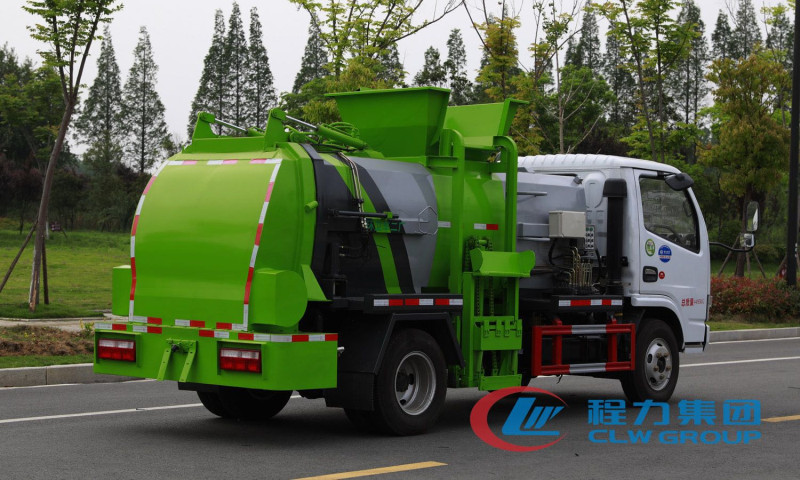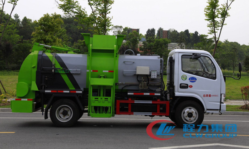 罐式餐厨垃圾车是最基本的餐厨垃圾车类型,罐式餐厨垃圾车操作简单,价格实惠,一般有三种型号,小型,中型,大型,罐体采用5mm优质Q235碳钢板制作(也可选择不锈钢制作),罐体后封头上部采用铰链连接,后封头采用液压控制 后盖开启关闭,当后盖打开时,可以开始卸料工作,罐体尾部两侧安装液压油缸实现罐体举升,更好的完成卸料工作;后盖液压锁紧控制,带耐磨腐蚀硅胶密封条,通过液压控制实行密封功能;罐体右侧前端装有挂桶提升机构,实现装卸垃圾,挂桶提升机构前端有圆形液位计。