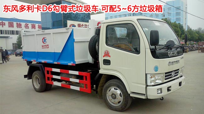 东风多利卡拉臂式垃圾车又称车厢可卸式垃圾车或勾臂垃圾车,底盘采用国五东风多利卡底盘,拉臂上装选用本公司自主设计,自主知识产权的直臂,知名品牌液压双缸(缸径125);