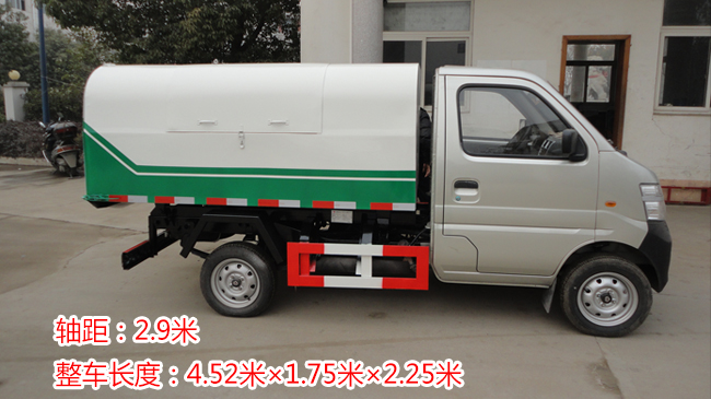 挂桶式垃圾车:适用于生活小区,城市街道、学校、景区垃圾处理,可快速将垃圾桶内的垃圾自动收入车厢,到达目的地之后一次性自卸出来。