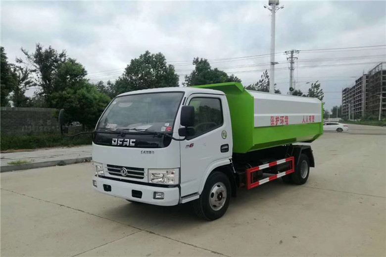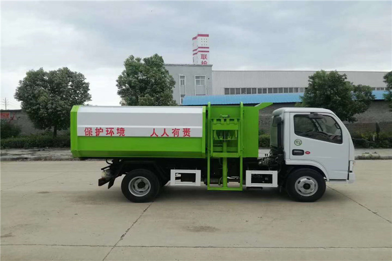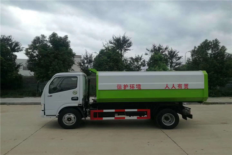 挂桶垃圾车,又称:自装卸式垃圾车,主要用于各环卫市政及大型厂矿部门运载各种垃圾,亦可运输灰、砂、石、土等散装建筑材料,也可以在矿山或煤矿中运送矿石或煤。由密封式垃圾厢、液压系统、操作系统组成。举升油制缸(2支)垃圾厢可自吊上放下,上下一次工作循环时间≤50S。该车的特点是一个车能配几十个垃圾厢,能实现一台车与多个垃圾厢联合作业,循环运输,充分提高了车辆的运输能力,特别适用于短途运输,如环卫部门对城镇垃圾的清理、运输等。