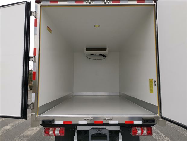 江淮帅铃E 4米2冷藏车厢体配置为:采用断桥隔热工艺,整体框架结构制作,厢体内、外壁材料为玻璃钢板,采用高密度保温层,厢板内带有骨架,厢体厚度80mm,门框,门饰件、包角全部使用不锈钢材质。最新款铝合金包边型材,厢体内采用LED照明灯及厢体示宽灯;门框密封条为橡胶材质,后门梁带加厚防撞块,加厚型不锈钢铰链及锁件。车体副梁采用510L高强度钢制作,底板为铝花纹板,车厢后门带一个上车扶手,其余标配;