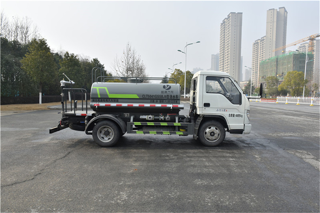 福田2.7 方洒水车蓝牌上装配置: 1、罐体约为 2.7 方, 2、边灯带电,罐体尾部上方标配 2 个红色示宽灯, 3、冲孔平台(承载能力加强),炮筒后盖为定制型螺栓卡扣, 4、后对冲、后洒、侧喷,绿化高炮开关球阀均采用 50 大通经不锈 钢球阀, 5、新式轴承式水炮,更加耐用, 6、40-50 型水泵, 7、防腐法兰垫片, 8、铝制后洒,不易炸开 9、罐体自动焊(美国林肯焊机及电源),拼板自动焊接,封头环缝 焊接,无气孔,焊缝美观。 10、侧护网、后保险杠、均为螺栓连接,方便拆卸,维修方便。 11、塑料挡泥板,替代铁挡泥板,更加轻便,用螺栓连接,方便拆 卸。 12、前部、后部主管连接处为 6 孔圆法兰,不易冲垫