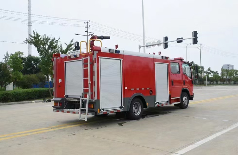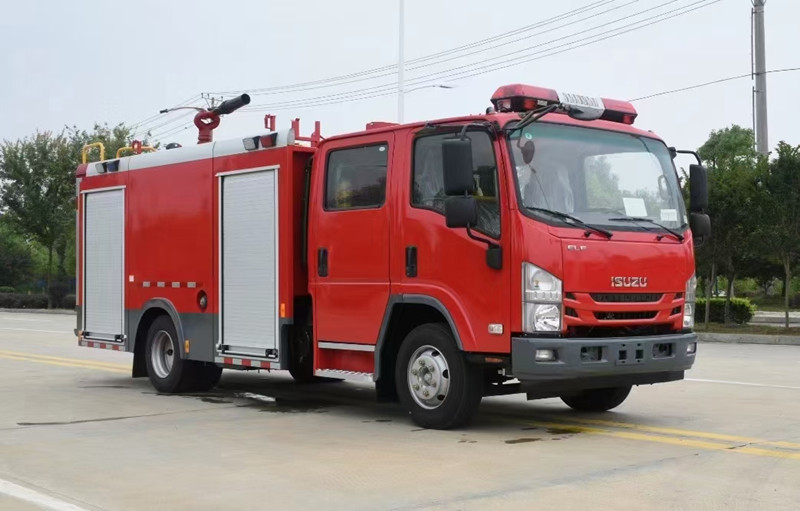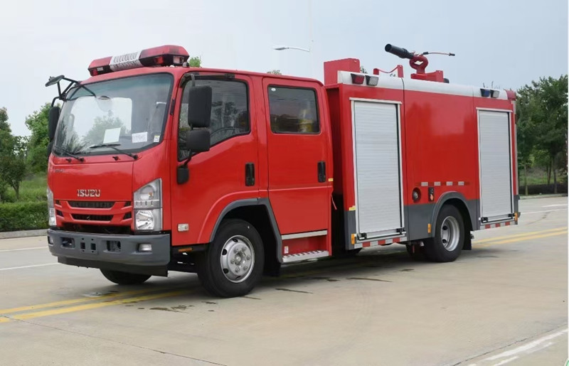 重庆五十铃2-3吨消防车庆铃QL1070A6HWY底盘改装,平头双排驾驶室,液压翻转,五十铃4KH1CN5LS发动机,98马力,国五排放,罐体容积2-3立方米;整车结构紧凑,方便灵活,动力性能好,车速高,能自由进出乡村狭窄道路及小区,具有大型消防车的全套消防功能,上装箱体的上装骨架全部采用引进欧洲技术生产的铝合金型材制造,整车的重量减少,机动性能和整车载重量提高。除了装备消防水泵及器材以外,还设有较大容量的贮水罐及水枪、水炮等。可将水和消防人员输送至火场独立进行扑救火灾。也可以从水源吸水直接进行扑救,或向其他消防车和灭火喷射装置供水。在缺水地区也可作供水、输水用车,主要适用于大中城镇、乡村狭窄街道、城市小区、繁忙的批发市场等场所的一般物质灭火,闲暇时可用于园林喷灌、道路清洒。