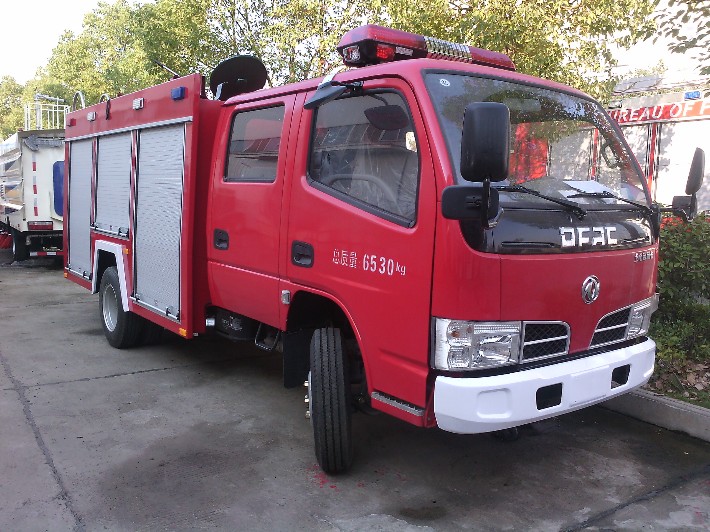 东风小多利卡2-3吨消防车是我公司采用东风原厂EQ1070DJ3BDF底盘,选配安徽全柴动力股份有限公司生产的4B2-115C50发动机,85KW,115马力。驾驶室为平头双排四开门驾驶室,全钢框架焊接结构,可乘坐消防员5人。除原车设备外,加装有100W警*报器、回转警示灯开关,取力器控制开关及指示灯。