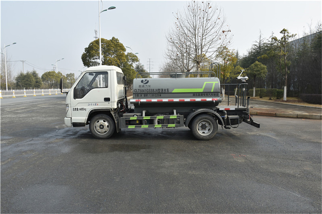 定州洒水车产品配置 1.底盘配置: 发动机全柴 95 马力,轴距 2600,蒙沃 5 档箱,6.00 钢丝胎, 动力转向、TBOX、油刹,电动玻璃。2.上装配置: 1、罐体约为 2.7 方, 2、边灯带电,罐体尾部上方标配 2 个红色示宽灯, 3、冲孔平台(承载能力加强),炮筒后盖为定制型螺栓卡扣, 4、后对冲、后洒、侧喷,绿化高炮开关球阀均采用 50 大通经不锈 钢球阀, 5、新式轴承式水炮,更加耐用, 6、40-50 型水泵, 7、防腐法兰垫片, 8、铝制后洒,不易炸开 9、罐体自动焊(美国林肯焊机及电源),拼板自动焊接,封头环缝 焊接,无气孔,焊缝美观。 10、侧护网、后保险杠、均为螺栓连接,方便拆卸,维修方便。 11、塑料挡泥板,替代铁挡泥板,更加轻便,用螺栓连接,方便拆 卸。 12、前部、后部主管连接处为 6 孔圆法兰,不易冲垫