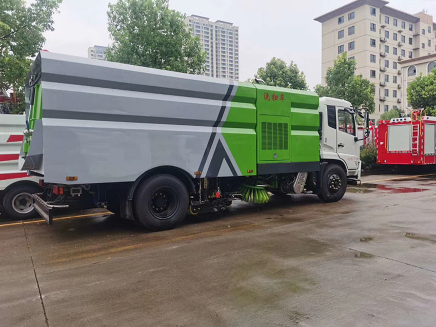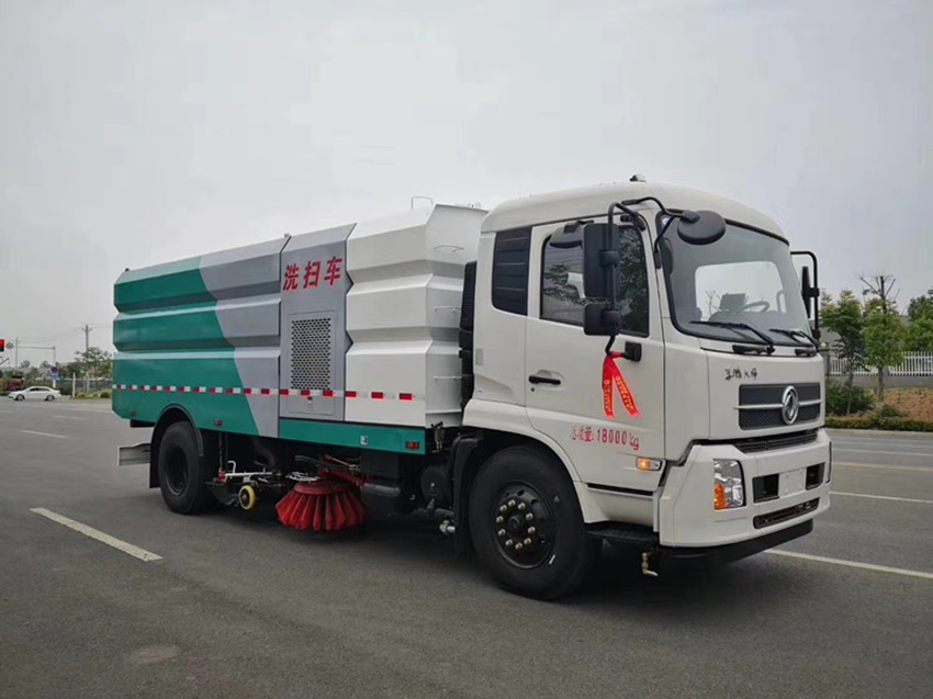 洗扫车是指承担城区或者国道,高速公路等的道路的洗扫、冲洗、清扫作业的车辆,车辆中置两刷盘,中置宽吸盘,或者四盘扫,后置吸口。类型的道路作业车辆。既可单独作为扫路车进行路面清扫抽吸作业;又可作为高压冲洗车进行路面冲洗抽吸作业;还可将路面清扫抽吸与高压冲水组合作为洗扫车使用,实现清扫、冲洗、抽洗的多种组合选择使用,以满足不同用户的多种需求,该车可广泛适用于城区主干路及高架桥的冲洗、清扫作业