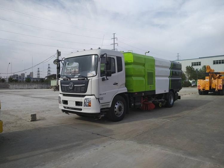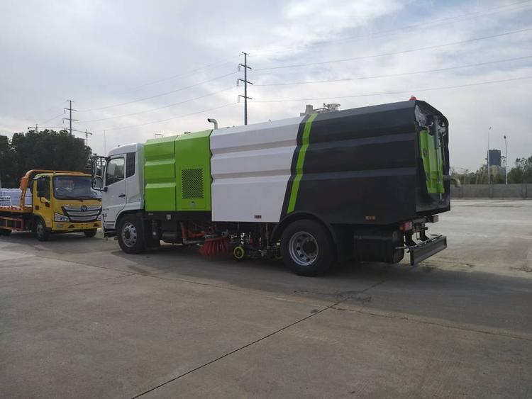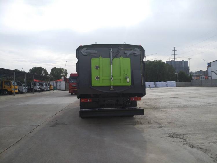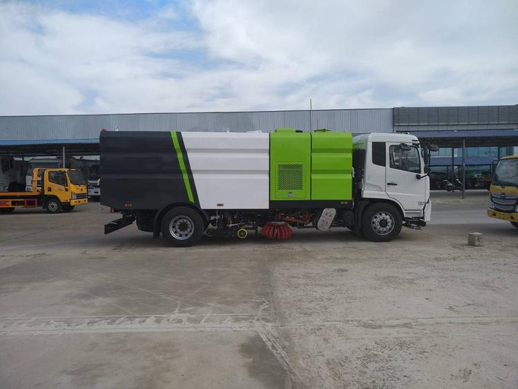 国六东风天锦洗扫车 箱体容积9立方水7立方尘.中置2扫盘、康明斯170马力副发动机(多利卡为140马力康明斯副发动机),德国品孚高压水泵(前冲侧喷中喷后喷雾侧冲洗车水枪垃圾箱自洁装置)、高压路沿清洗喷头,威龙低压泵,(前冲)不锈钢垃圾箱、不锈钢高压管路,德国控制器西门子电器原件、水箱均带防溢或低水位报警装置;倒车及洗扫状态室内监视器、18m高压冲洗卷盘、清扫宽度3.5m;清洗压力10Mpa,吸入颗粒度120mm.