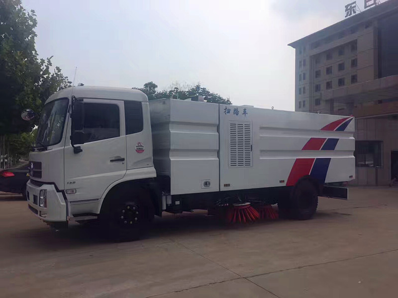 该扫路车采用东风天锦型国五二类底盘改装,加装副发动机、风机、清水箱、垃圾箱、左右立扫、后置吸盘,扫盘降尘系统,液压系统、专用装置电控系统和副车架等改装而成(可加装前冲后洒,可以根据客户要求做成方形、圆形箱体。)