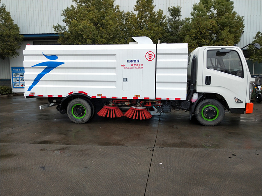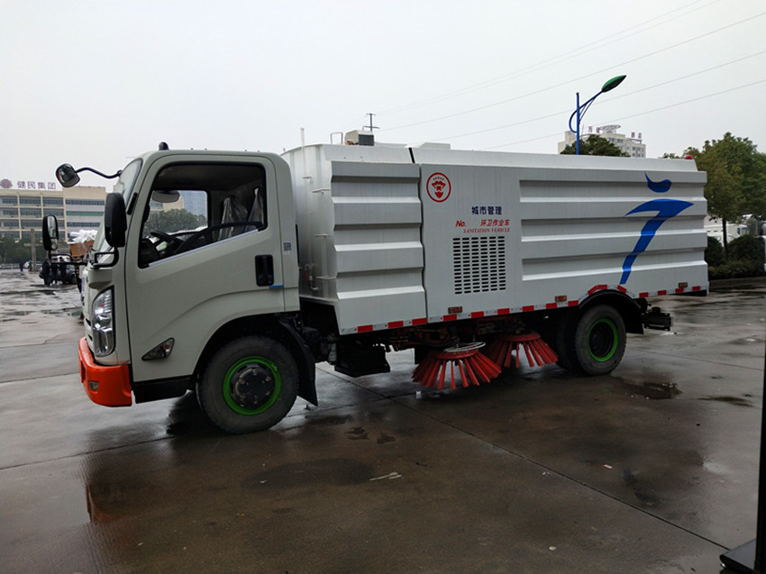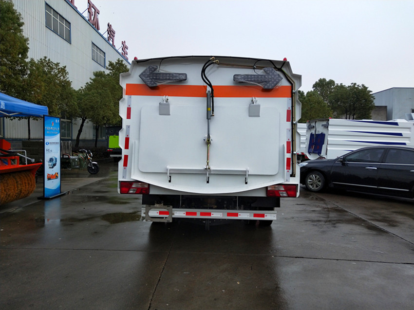 1、扫路车采用吸扫结合的方式收集垃圾,湿式除尘、电液控制,液压倾翻卸料的作业方式对路面进行清扫作业。