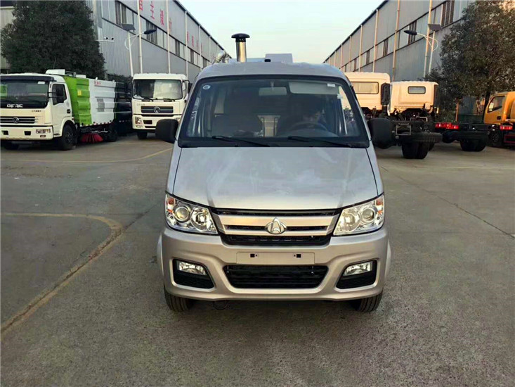 4、长安扫路车-小型2.5方扫路车的垃圾箱水箱均使用不锈钢材质,其中垃圾箱容积为1.5立方,清水箱容积为0.5立方。
