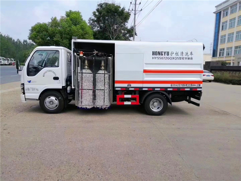 湖北宏宇专用汽车有限公司生产的“虹宇牌”HYS5072GQXQ5型护栏清洗车:国五排放标准(国六排放及新能源天然气均有现车)水箱容积高达4m3,可连续作业4小时,采用最先进的液压控制护栏清洗臂系统,水平方向可180°升缩,上下方向可180°调节,前置滚刷可进行180°旋转,可以轻松应对各种形式的护栏