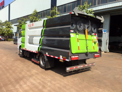 吸尘车整车配有三层过滤系统:一层箱体内部采用分段式垃圾仓,垃圾由吸盘进入垃圾箱内先将垃圾分为固体垃圾与灰尘。二层垃圾箱内部滤桶与垃圾仓上装有隔离板,减少滤桶与灰尘之间互窜。三层滤桶选用进口覆膜材质滤桶,彻底解决吐灰问题。自带后喷雾,垃圾箱卸料喷雾降尘装置,可有效抑制灰尘。后门手持吸管及手持吸盘快速接头。