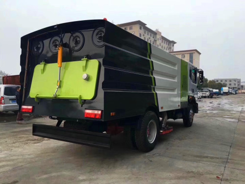 6、垃圾箱容积7m3,内部加装进口防水材料滤筒,垃圾分类存放,能有效地对树叶,石子,灰尘进行粗细处理,厢体采用倾翻卸料。