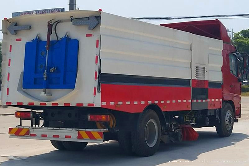 11、陕汽8吨洗扫车的垃圾箱内带有自洁功能,在垃圾倾倒完成后可将箱内的残留垃圾冲洗干净,减轻环卫工人的负担。