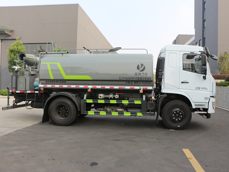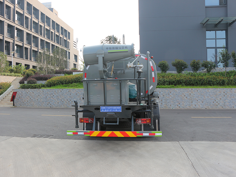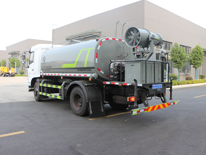标准配置洒水车主要装备有:前冲(冲洗公路路面)、后洒(公路路面养护)、侧喷、高位侧花洒(路边绿化带优化);后工作平台高压水炮,可调节成柱状,射程≥28m;也可调节成雾状,射程≥30米,水泵自吸高度:≤7m,洒水宽度:≥15m。侧防护网,自流阀,消防接头。洒水车水泵为常压水泵,功能可以抽水、排水。另外根据用户要求,可加消防泵、喷雾机、农药卷盘、农药柱塞泵。罐内可以做防腐防锈、电磁阀气动阀自动放水等****,以满足不同用户需求。