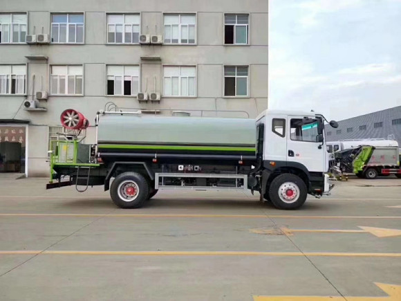 洒水车吸程≧7米,洒水宽度≧14-16米,射程≧25-40米,引水时间<5min,流量60m3/h。前冲(喷)、后洒、带侧喷(花洒)、带后工作平台、平台上安装绿化洒水高炮(炮喷射形状可调节:直冲、大雨、中雨、毛毛雨、雾状、可连续调节,360°旋转),配消防接口,自流阀,滤网,带自吸自排功能。配备大功率专用洒水泵,泵可自吸自排,安装过滤网,带消防接口,可通过消防栓进水,带自流阀,此车尾部加装大功率农药喷洒炮,