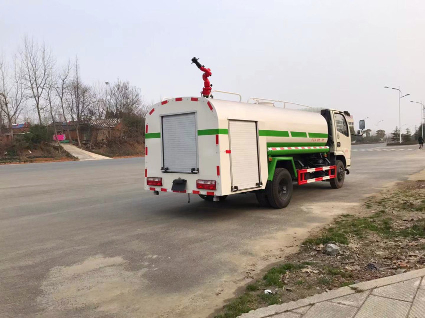 上装配置:罐体采用武钢专用容积板制作,实际容积5立方,罐内隔板具有防波作用,以减低汽车行驶时罐体液体的冲击。泵进泵出,消防栓接口,前冲、后洒、侧喷、后工作平台带绿化水炮,垂直吸程 7米,洒水宽度 14-16米,射程 20-25米,引水时间5min,流量90m3/h。自流阀、滤网、带自吸自排功能。两根等长输水管,金属漆,其余标配。可加装方向助力、空调、加装药盘、气动控制阀、喷药设备、非车带泵动力等。