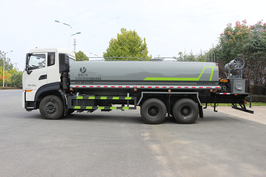 上安装绿化洒水高炮,炮可喷洒农药,并有多种雨状可调节(大雨、中雨、毛毛雨、雾状),配备大功率专用洒水泵,泵可自吸自排,带自流阀,带消防接头,带过滤装置。其它严格按国家公告标准生产。 采用东风天龙后双桥底盘,国六排放标准,康明斯290马力柴油发动机,9档变速箱,排半标准天龙驾驶室,295/80R22.5 18PR真空胎,4350+1350轴距,原装空调,ABS,行车记录仪。