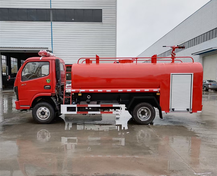 5方消防洒水车 配备大功率专用洒水泵,泵可自吸自排,安装过滤网,带消防接口,可通过消防栓进水,带自流阀,随车选装20米绿化卷盘,可喷洒农药,罐体金属漆。罐体有椭圆和方圆罐两种,可根据用户的要求定做