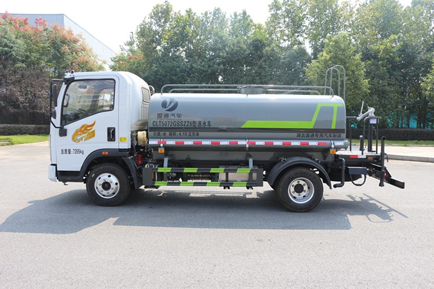 ;罐体有效容积(立方米)、罐体外形尺寸(mm):罐体有效容积:4.15立方米; 罐体外形尺寸(长×长轴×短轴)(mm):3400×1600×1100;专用功能及装置: 该车主要用于城乡园林绿化,路面喷洒,除尘和降温;主要装置为水罐及喷洒装置; |
