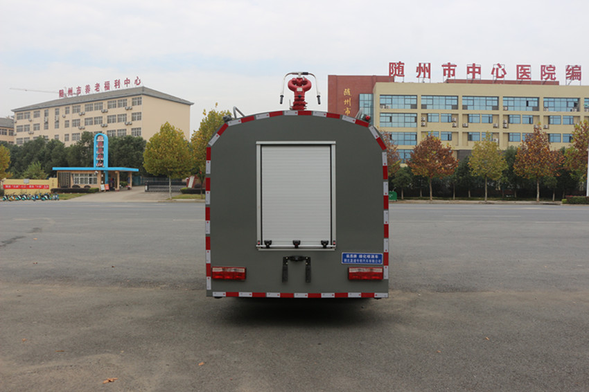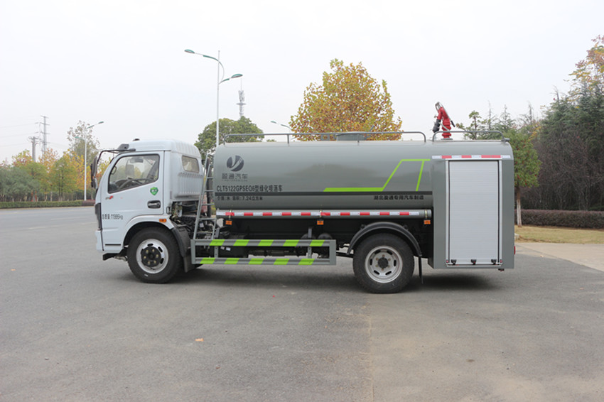 东风多利卡消防洒水车,采用东风多利卡EQ1111GLJ型底盘改装而成。整车由消防员乘员室和车身两大部分组成,乘员室为原装双排,可乘坐3人,该车为内仓罐结构,车身前部为水罐+器材箱,后部为泵房。载液罐体为优质碳钢,与底盘采用弹性连接,载水8000kg(大),装备了上海茸申消防器材有限公司生产CB10/20型消防泵,额定流量20L/S,车顶安装成都威斯特消防机械有限公司生产的PS20W型车用消防炮。该车大的特点是机动灵活、操控性好、维修简便。可广泛应用于公安消防队、厂矿企业及社区、码头等场所,扑救一般物质火灾。