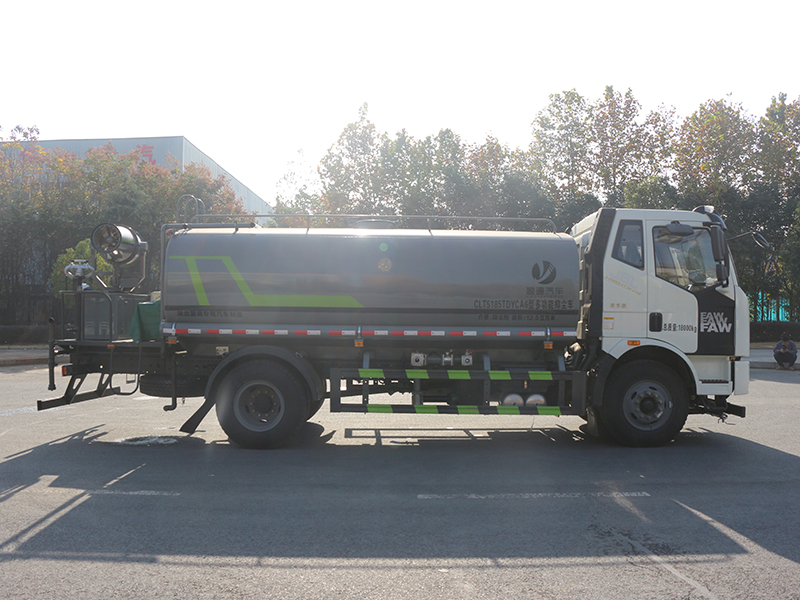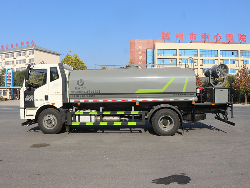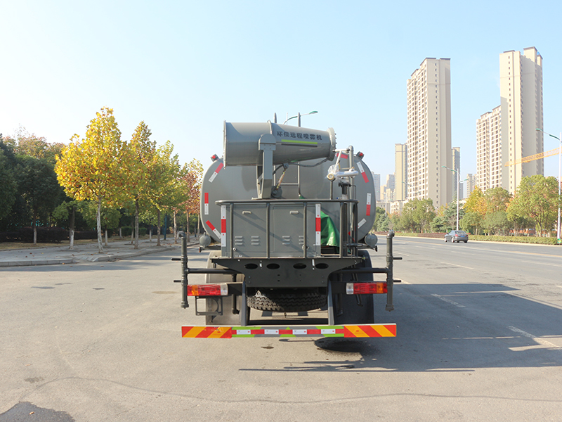 标准配置洒水车主要装备有:前冲(冲洗公路路面)、后洒(公路路面养护)、侧喷、高位侧花洒(路边绿化带优化);后工作平台高压水炮,可调节成柱状,射程≥28m;也可调节成雾状,射程≥30米,水泵自吸高度:≤7m,洒水宽度:≥15m。侧防护网,自流阀,消防接头。洒水车水泵为常压水泵,功能可以抽水、排水。另外根据用户要求,可加消防泵、喷雾机、农药卷盘、农药柱塞泵。罐内可以做防腐防锈、电磁阀气动阀自动放水等****,以满足不同用户需求。