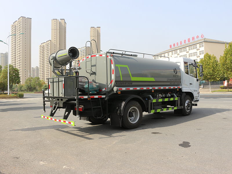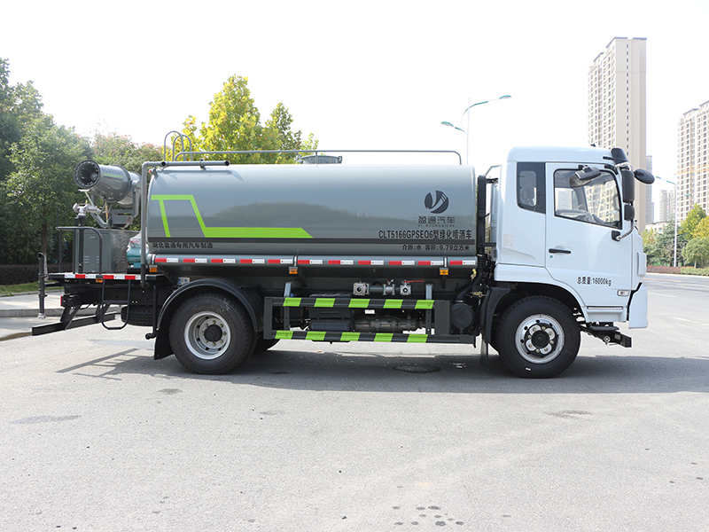 标准配置洒水车主要装备有:前冲(冲洗公路路面)、后洒(公路路面养护)、侧喷、高位侧花洒(路边绿化带优化);后工作平台高压水炮,可调节成柱状,射程≥28m;也可调节成雾状,射程≥30米,水泵自吸高度:≤7m,洒水宽度:≥15m。侧防护网,自流阀,消防接头。洒水车水泵为常压水泵,功能可以抽水、排水。另外根据用户要求,可加消防泵、喷雾机、农药卷盘、农药柱塞泵。罐内可以做防腐防锈、电磁阀气动阀自动放水等****,以满足不同用户需求。