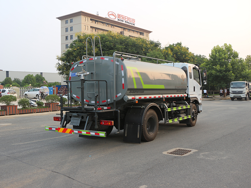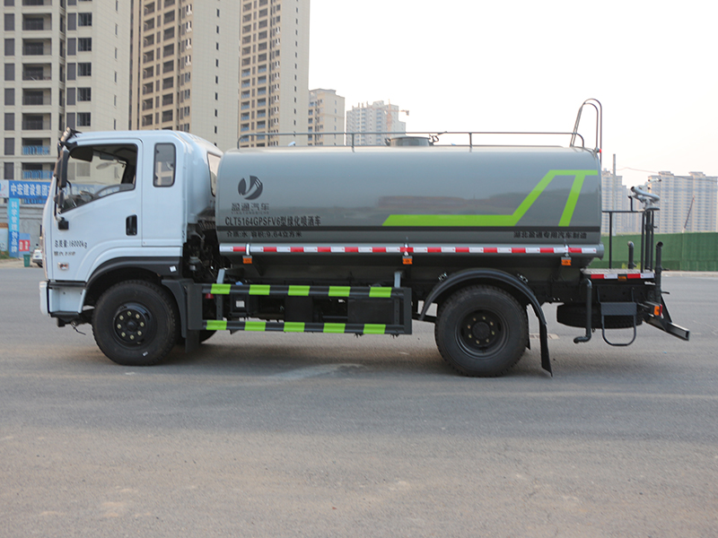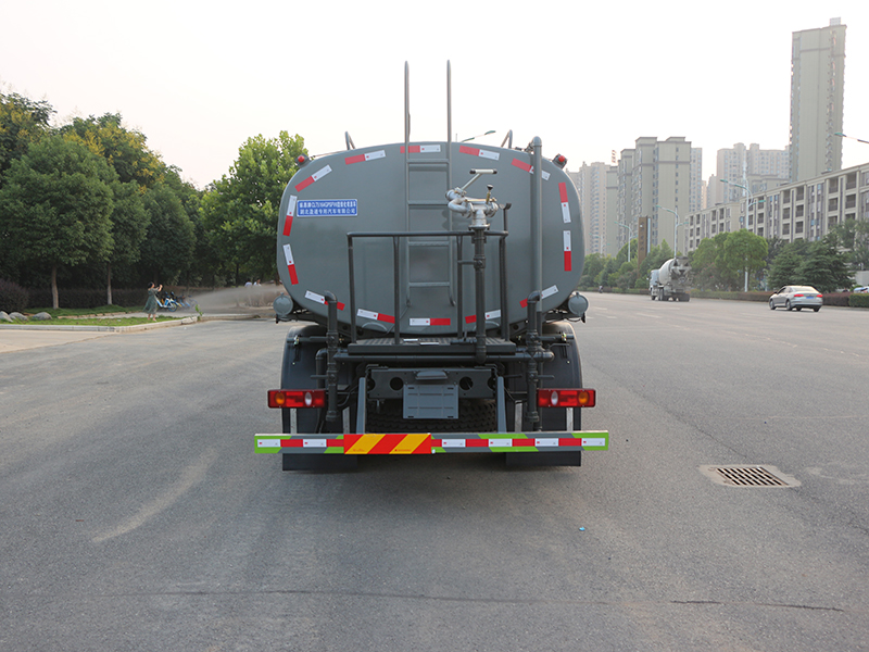 标准配置洒水车主要装备有:前冲(冲洗公路路面)、后洒(公路路面养护)、侧喷、高位侧花洒(路边绿化带优化);后工作平台高压水炮,可调节成柱状,射程≥28m;也可调节成雾状,射程≥30米,水泵自吸高度:≤7m,洒水宽度:≥15m。侧防护网,自流阀,消防接头。洒水车水泵为常压水泵,功能可以抽水、排水。另外根据用户要求,可加消防泵、喷雾机、农药卷盘、农药柱塞泵。罐内可以做防腐防锈、电磁阀气动阀自动放水等****,以满足不同用户需求。