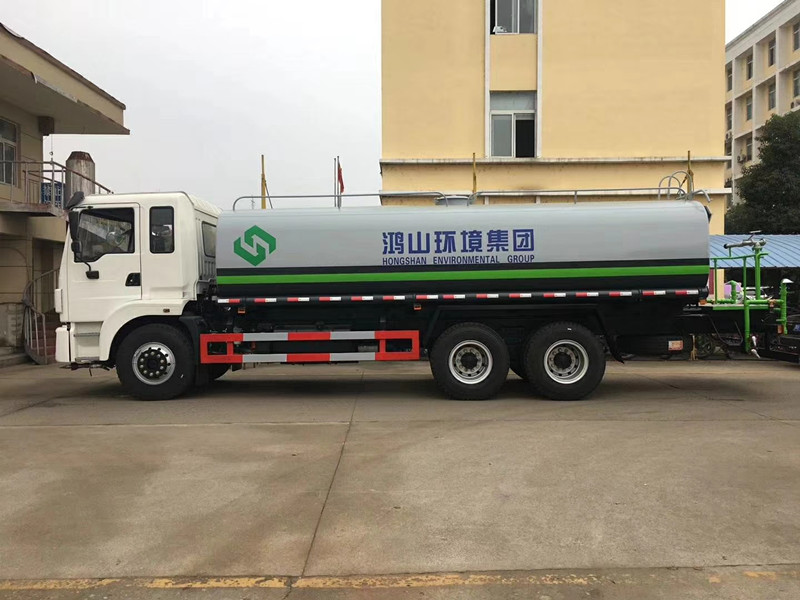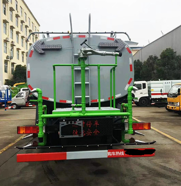 随底盘选装驾驶室;选装侧喷及农药炮;品名:水;密度:1000千克/立方米;有效容积:15.6立方米;罐体外形尺寸(长×长轴×短轴)(mm):6600×2300×1500;ABS吸程≧7米,洒水宽度≧14-16米,射程≧25-30米,引水时间<5min,流量60m3/h。前冲(喷)、后洒、带侧喷(花洒)、带后工作平台、平台上安装绿化洒水高炮(炮喷射形状可调节:直冲、大雨、中雨、毛毛雨、雾状、可连续调节,360°旋转),配消防接口,自流阀,滤网,带自吸自排功能。配备大功率专用洒水泵,泵可自吸自排,安装过滤网,带消防接口,可通过消防栓进水,带自流阀,随车选装20米绿化卷盘,可喷洒农药,罐体金属漆。罐体有椭圆和方圆罐两种,可根据用户的要求定做。