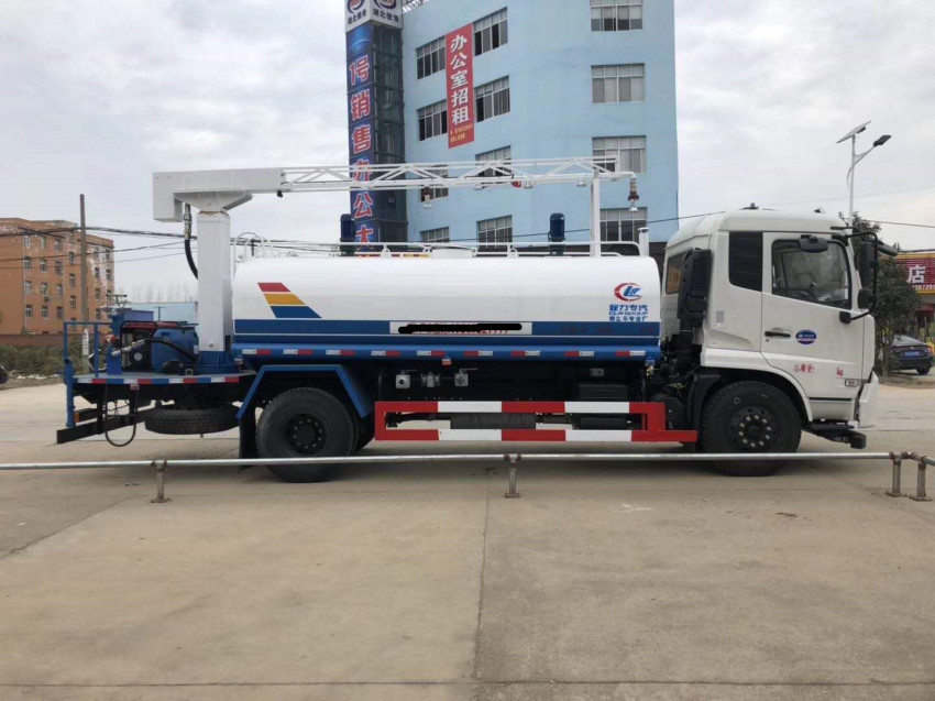 抑尘车吸程≧7米,洒水宽度≧14-16米,射程≧25-40米,引水时间<5min,流量60m3/h。前冲(喷)、后洒、带侧喷(花洒)、带后工作平台、平台上安装绿化洒水高炮(炮喷射形状可调节:直冲、大雨、中雨、毛毛雨、雾状、可连续调节,360°旋转),配消防接口,自流阀,滤网,带自吸自排功能。配备大功率专用洒水泵,泵可自吸自排,安装过滤网,带消防接口,可通过消防栓进水,带自流阀,此车尾部加装大功率农药喷洒炮,喷洒状态雾状,有效射程15-45米,外部平台带独立的机组。