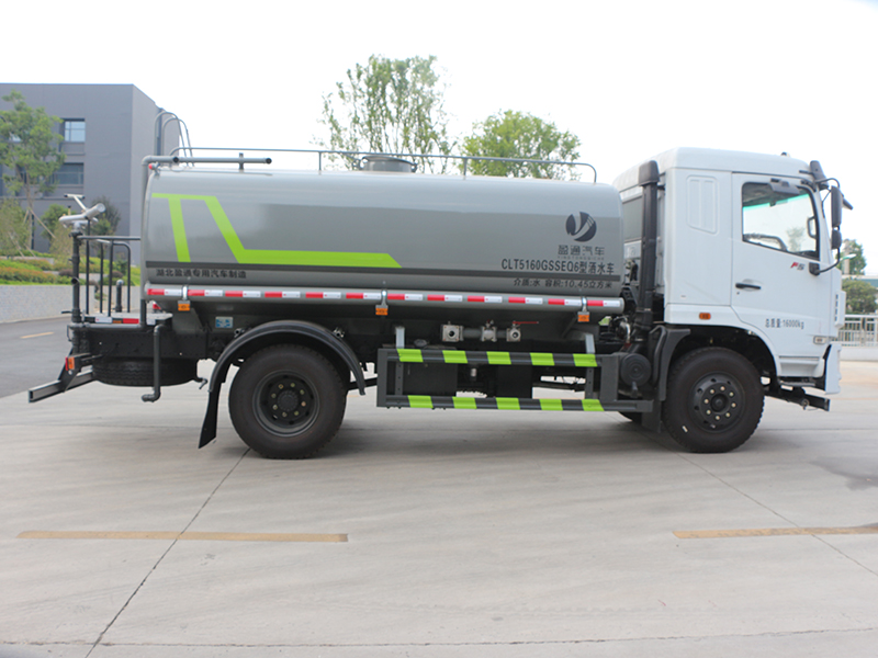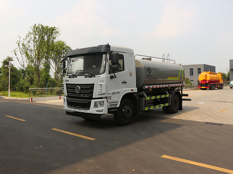 标准配置洒水车主要装备有:前冲(冲洗公路路面)、后洒(公路路面养护)、侧喷、高位侧花洒(路边绿化带优化);后工作平台高压水炮,可调节成柱状,射程≥28m;也可调节成雾状,射程≥30米,水泵自吸高度:≤7m,洒水宽度:≥15m。侧防护网,自流阀,消防接头。洒水车水泵为常压水泵,功能可以抽水、排水。另外根据用户要求,可加消防泵、喷雾机、农药卷盘、农药柱塞泵。罐内可以做防腐防锈、电磁阀气动阀自动放水等****,以满足不同用户需求。