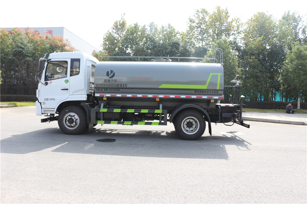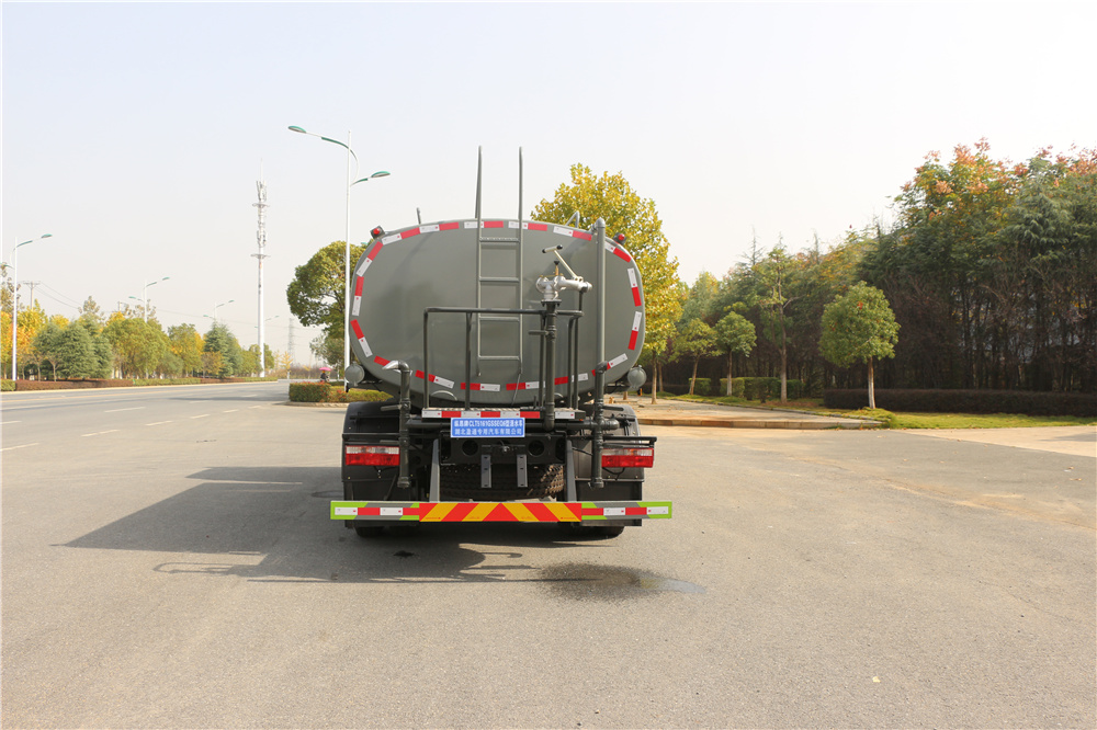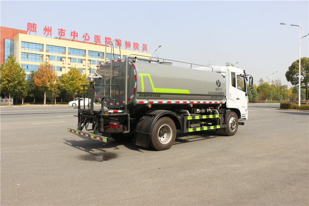 • 专用功能配置:罐体实际容积12.立方米,采用武钢优质碳钢板卷压成型配备专用洒水泵,自吸自排。前喷后洒侧喷后工作平台及洒水高压炮洒水泵垂直自吸高度为6米左右,整车洒水宽度14米左右,后工作平台水炮可调成:直冲状大雨中雨小雨毛毛雨,有效射程28,整车带接头水位计,自流阀后工作平台主管道有一个一寸的浇花接口,附送23米水管,1个爬梯,两侧及后保险杠。