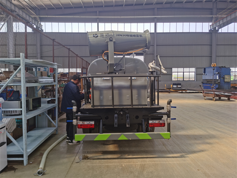 5方多利卡洒水车上装配置: 1、罐体约为 5 方, 2、边灯带电,罐体尾部上方标配 2 个红色示宽灯, 3、标配前喷为鸭嘴直冲,标配后冲,用户可根据自己的需求,来调 整对冲位置。 4、冲孔平台(承载能力加强),炮筒后盖为定制型螺栓卡扣, 5、前喷、后冲、后洒、侧喷,绿化高炮开关球阀均采用 50 大通经 不锈钢球阀, 6、新式轴承式水炮,更加耐用, 7、40-50 型水泵, 8、防腐法兰垫片, 9、铝制后洒,不易炸开 10、罐体自动焊(美国林肯焊机及电源),拼板自动焊接,封头环 缝焊接,无气孔,焊缝美观。 11、侧护网、后保险杠、均为螺栓连接,方便拆卸,维修方便。 12、塑料挡泥板,替代铁挡泥板,更加轻便,用螺栓连接,方便拆 卸。 13、前部、后部主管连接处为 6 孔圆法兰,不易冲垫