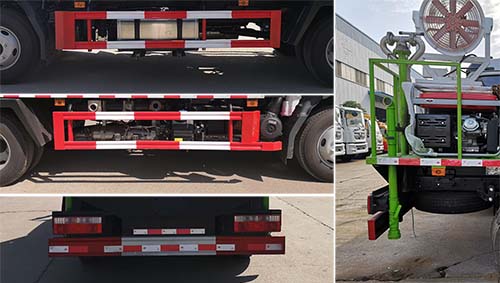 江淮牌抑尘车侧防护及后下部防护均采用Q235A材质,均采用焊接连接,后下部防护尺寸:60×120(mm), 离地面高度440mm;2、ABS型号/厂家为:VIE ABS-Ⅱ/浙江万安科技股份有限公司, CM4XL-4S/4M / 广州瑞立科密汽车电子股份有限公司.3、专用装置为抑尘雾炮,用于城市抑尘.4、随底盘选装驾驶室. |
