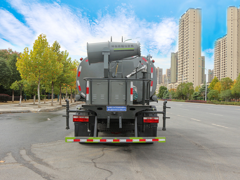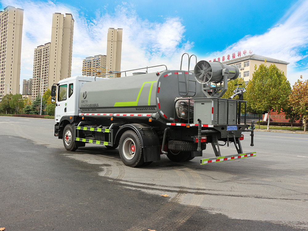 15方洒水车上装配置: 1、罐体约为 14.2 方, 2、边灯带电,罐体尾部上方标配 2 个红色示宽灯, 3、标配前喷为鸭嘴直冲,标配后冲,用户可根据自己的需求,来调 整对冲位置。 4、冲孔平台(承载能力加强),炮筒后盖为定制型螺栓卡扣, 5、前喷、后冲、后洒、侧喷,绿化高炮开关球阀均采用 50 大通经 不锈钢球阀, 6、新式轴承式水炮,更加耐用, 7、60-90 型水泵, 8、防腐法兰垫片, 9、铝制后洒,不易炸开 10、罐体自动焊(美国林肯焊机及电源),拼板自动焊接,封头环 缝焊接,无气孔,焊缝美观。 11、侧护网、后保险杠、均为螺栓连接,方便拆卸,维修方便。 12、塑料挡泥板,替代铁挡泥板,更加轻便,用螺栓连接,方便拆 卸。 13、前部、后部主管连接处为 6 孔圆法兰,不易冲垫