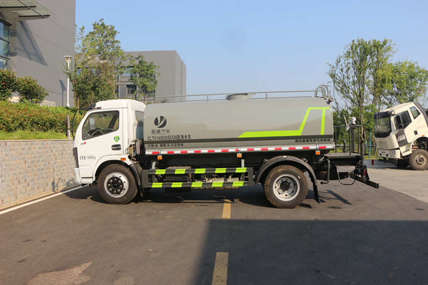 ABS型号:ABS/ASR-24V-4S/4M;ABS生产企业:襄阳东风隆诚机械有限责任公司;选装描述:随底盘选装驾驶室;所用材料材质、连接方式以及后部防护装置的主要尺寸参数(断面尺寸和离地高度):侧防护材料为Q235,侧防护与车架焊接连接.后部防护由专用装置代替,后部专用装置离地高度:440mm;罐体有效容积(立方米)、罐体外形尺寸(mm):罐体有效容积:7.0立方米,运输介质:水,密度1000千克/立方米.罐体外形尺寸(长×长轴×短轴)(mm):3600×1980×1280;专用功能及装置:该车主要用于城乡园林绿化洒水;主要装置为水罐及喷洒装置; |